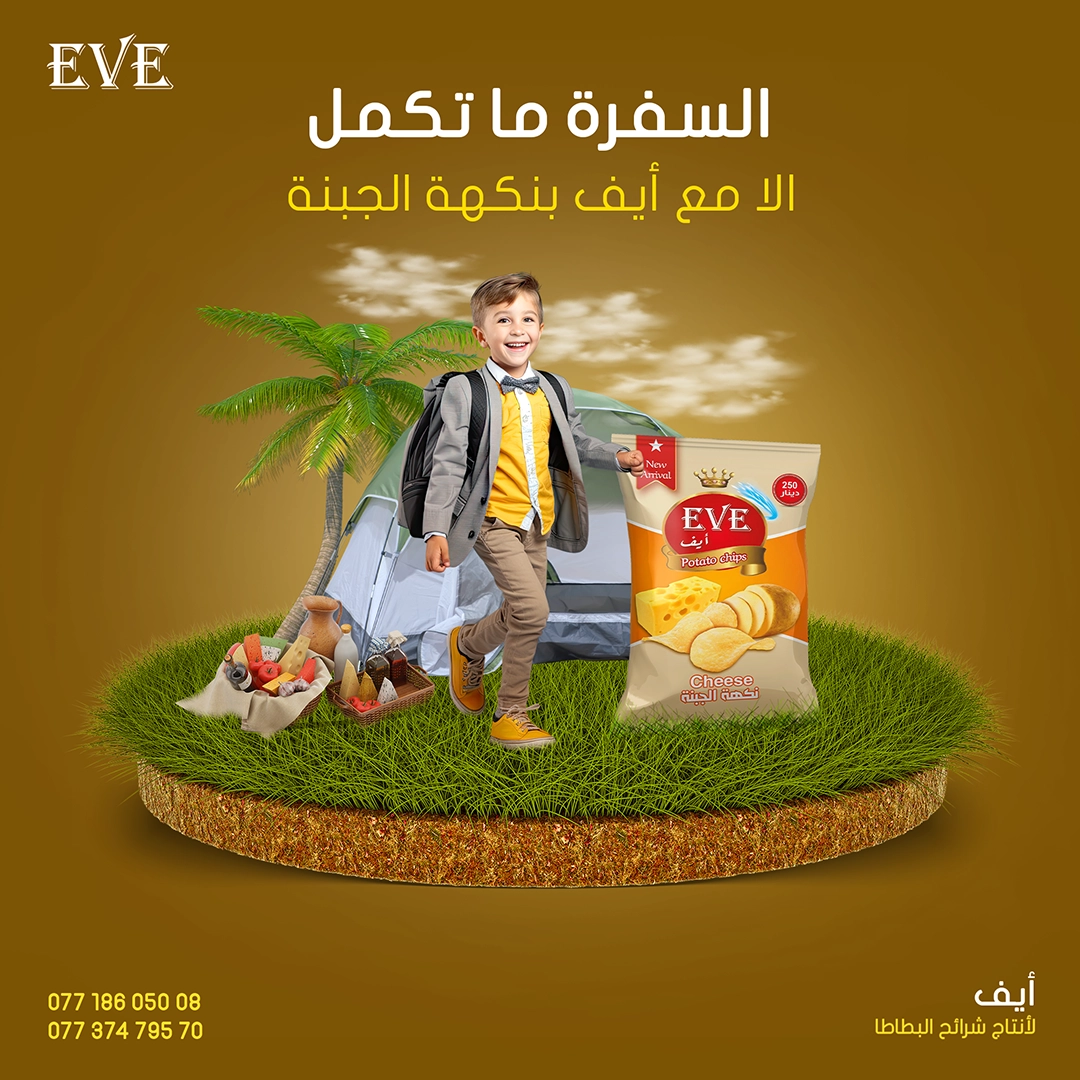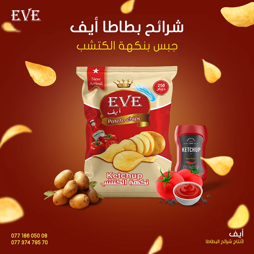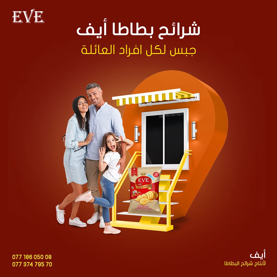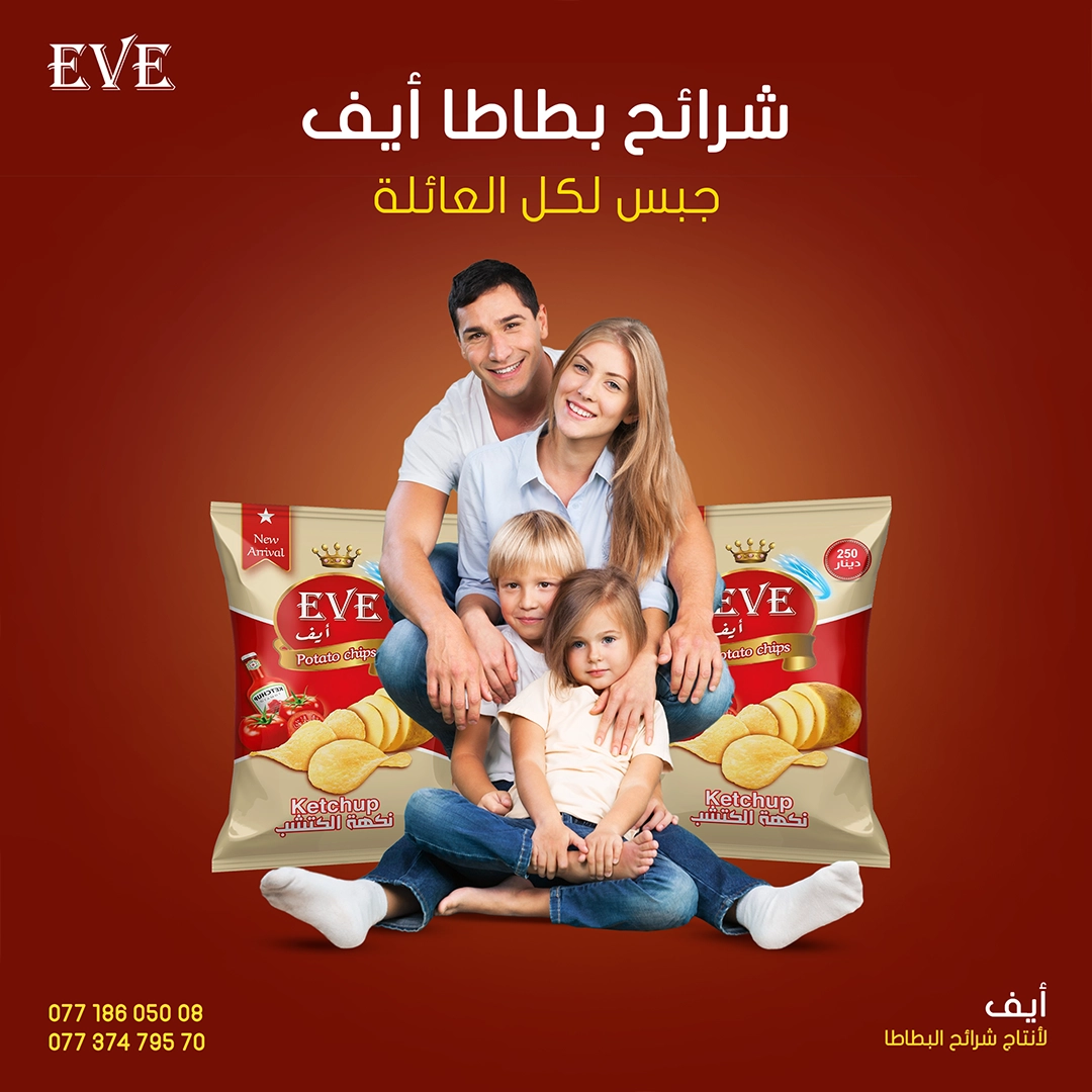 في هذا المشروع قمنا بتصميم باقة من منشورات التواصل الاجتماعي لمنتج شرائح بطاطا EVE، والتي تهدف إلى إبراز الطعم الطبيعي المستخلص من المزارع المحلية، وتسليط الضوء على تنوع النكهات التي تناسب جميع أفراد العائلة.